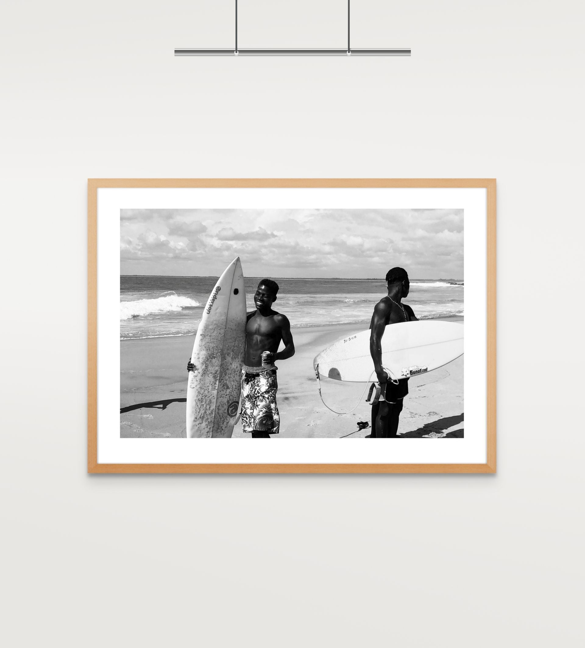 Each limited edition print is made on archival museum‑grade fine art paper in a small, numbered run. Signed and exclusive, you can choose a matte or gloss finish, along with one of two hand‑painted frames created for this collection. These prints capture the spirit of Robertsport’s surf culture in the detail it deserves and are made to live with you for a lifetime.