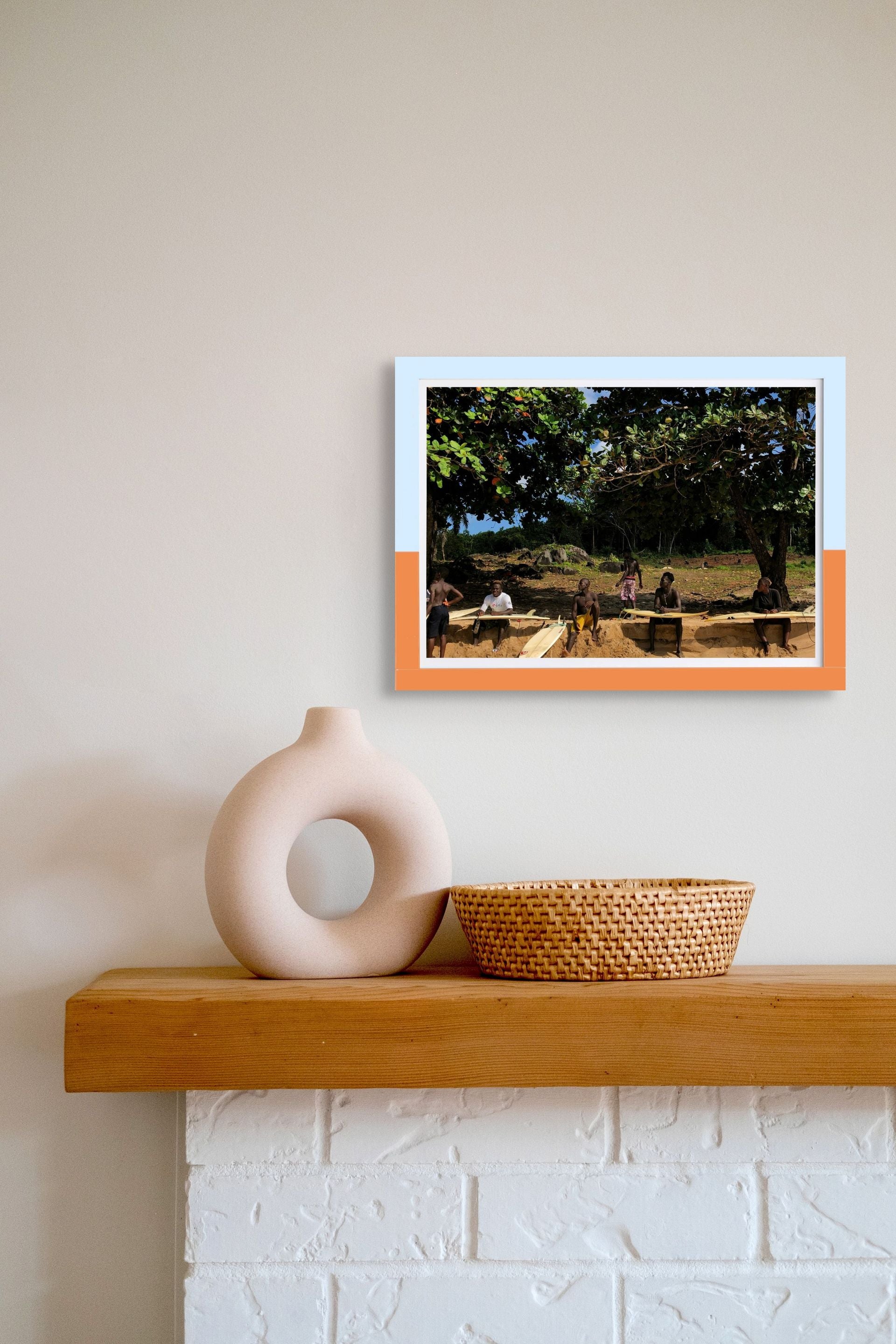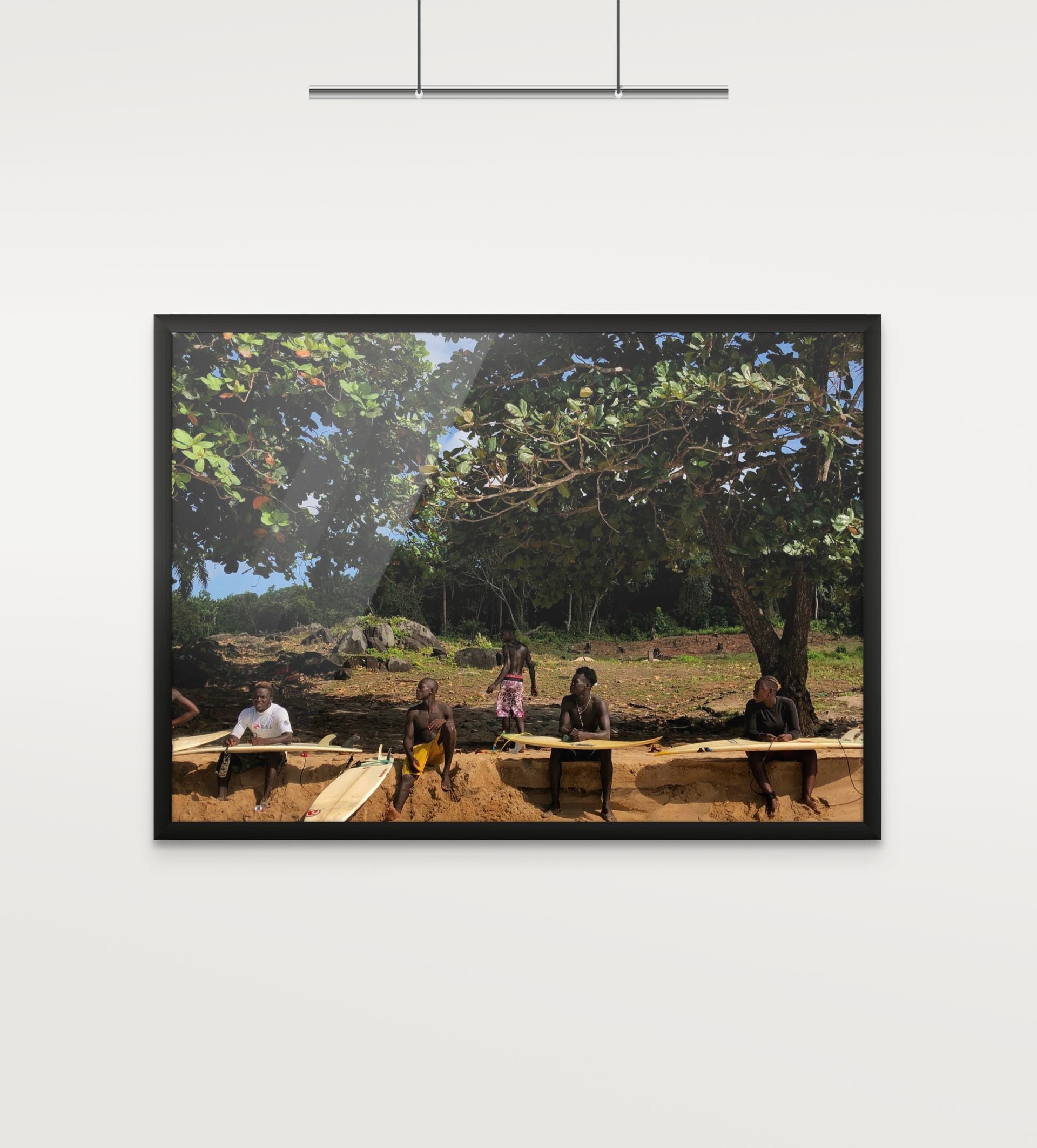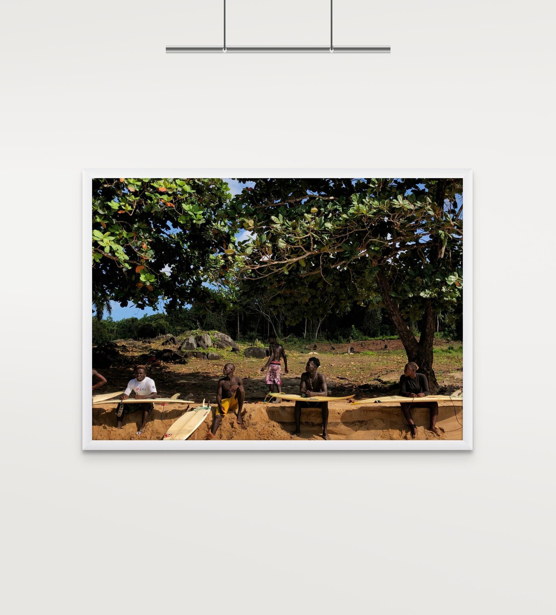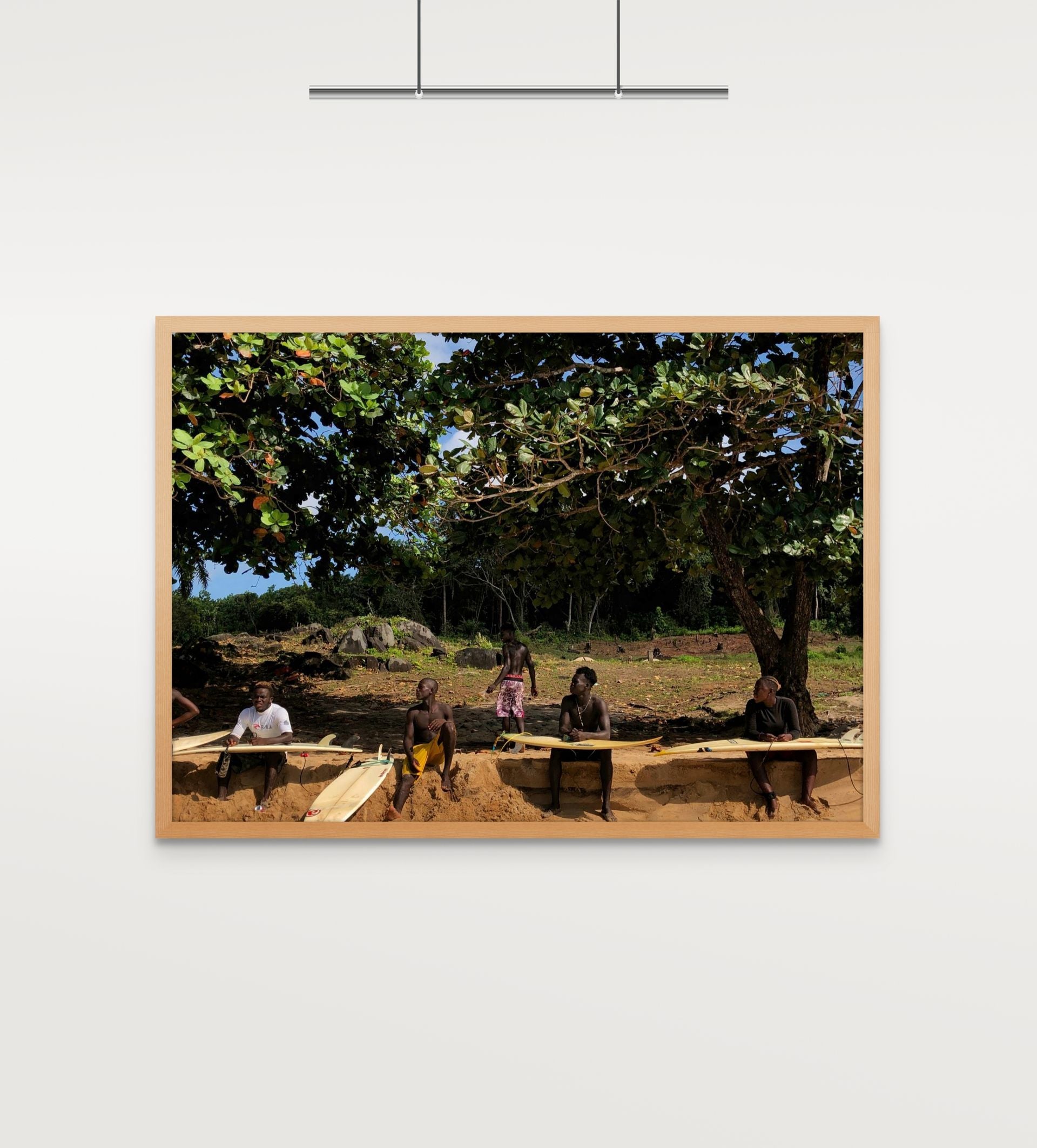 Each print from the open edition is printed on premium photo satin paper, with two hand‑painted frames to choose from. They bring Robertsport’s surf culture into your space, from the waves and the coast to the easy rhythm of life by the water.