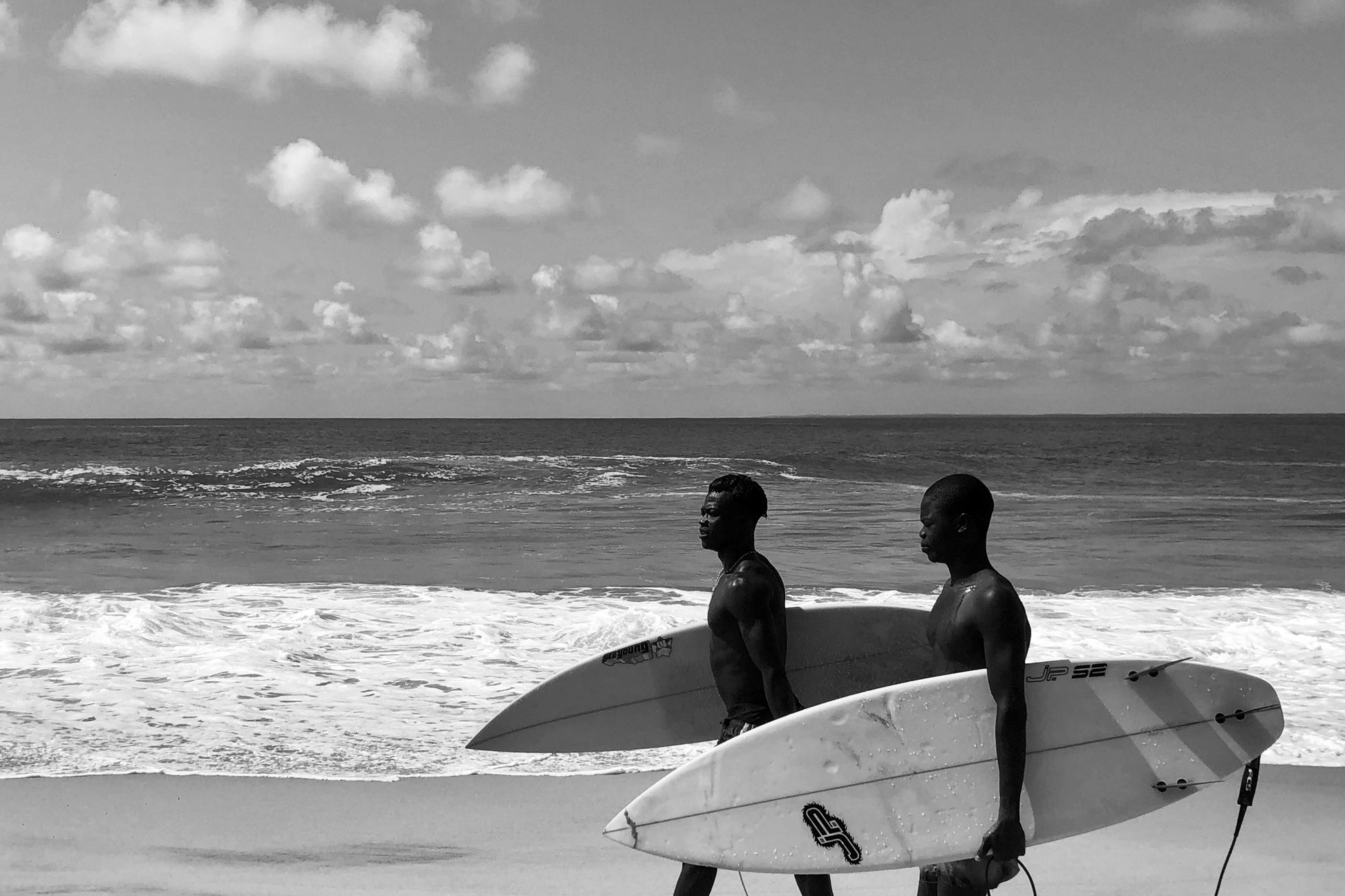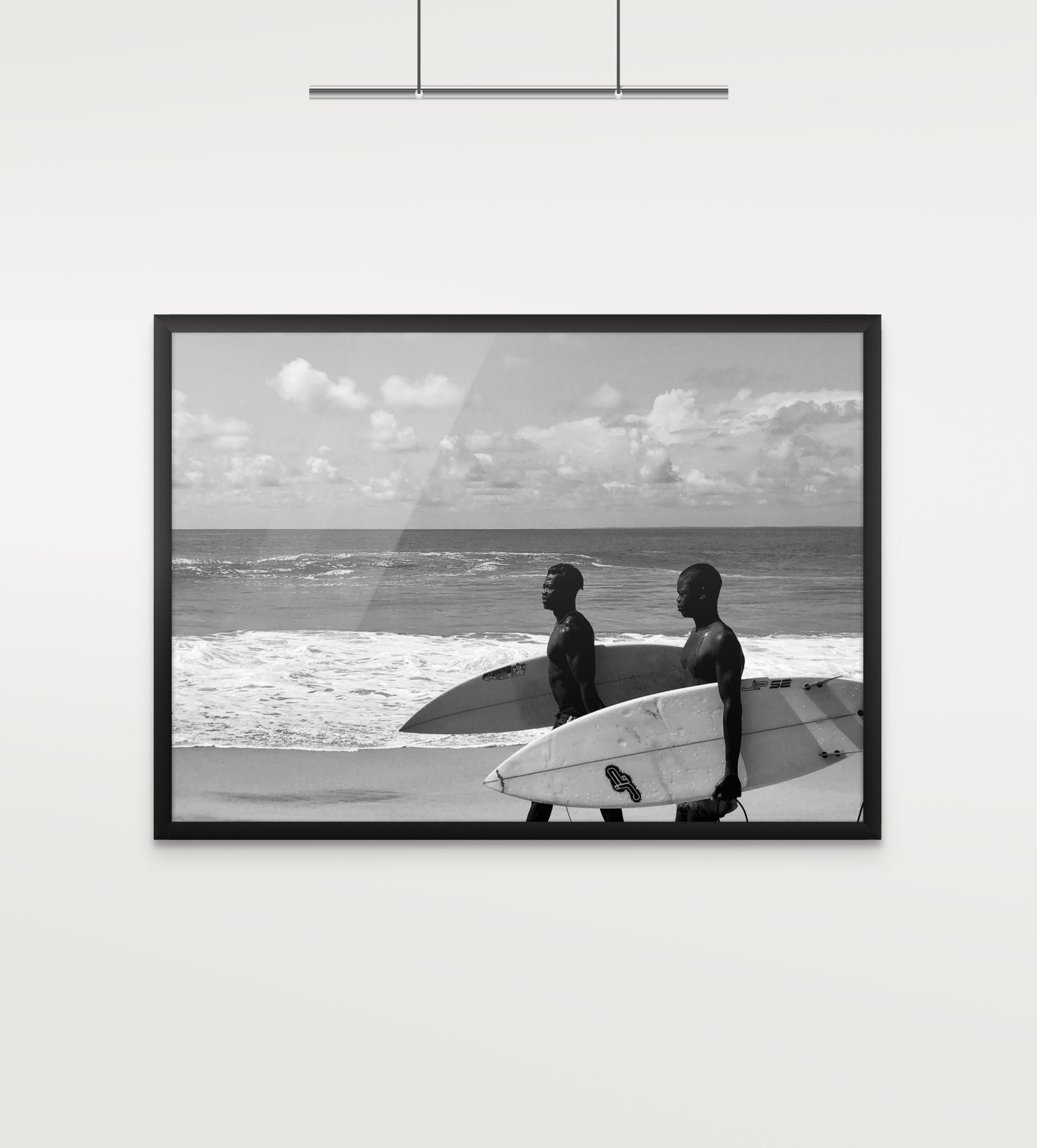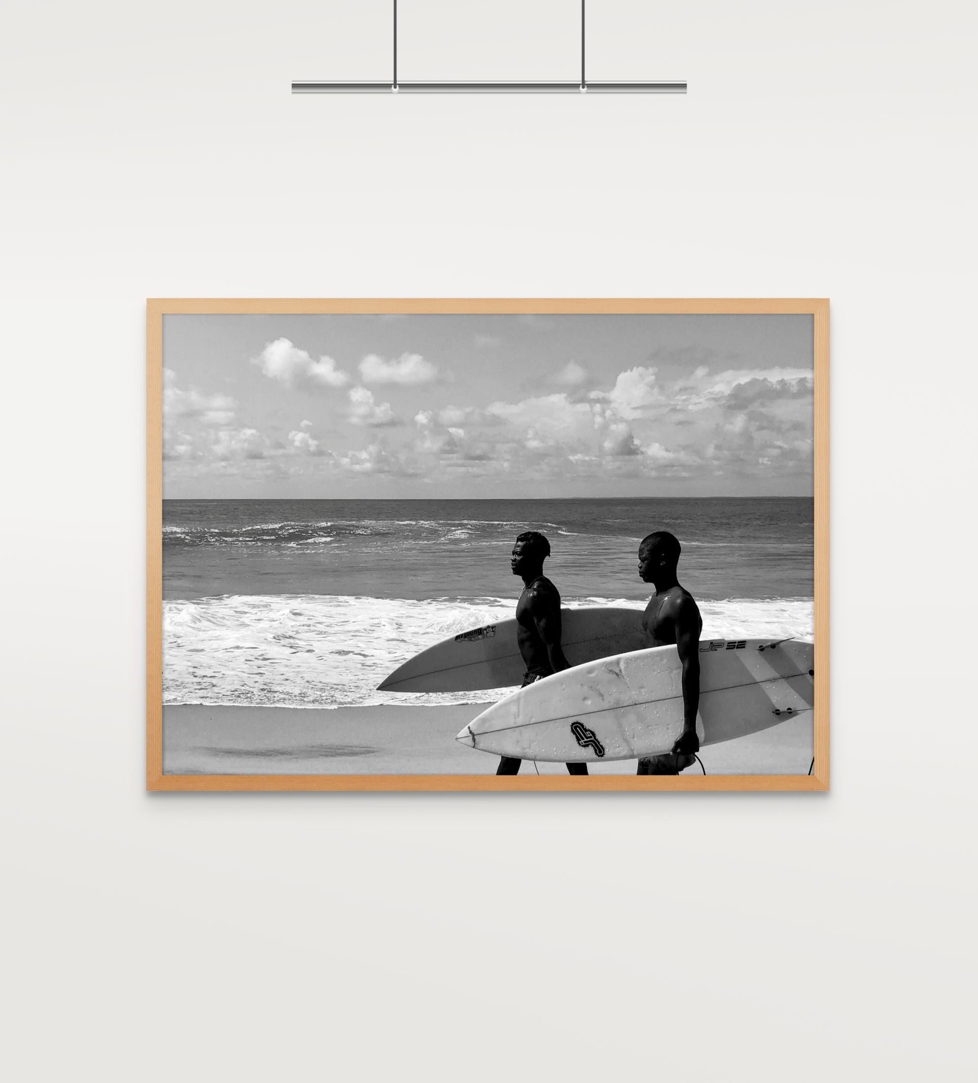 Each print from the open edition is printed on premium photo satin paper, with two hand‑painted frames to choose from. They bring Robertsport’s surf culture into your space, from the waves and the coast to the easy rhythm of life by the water.