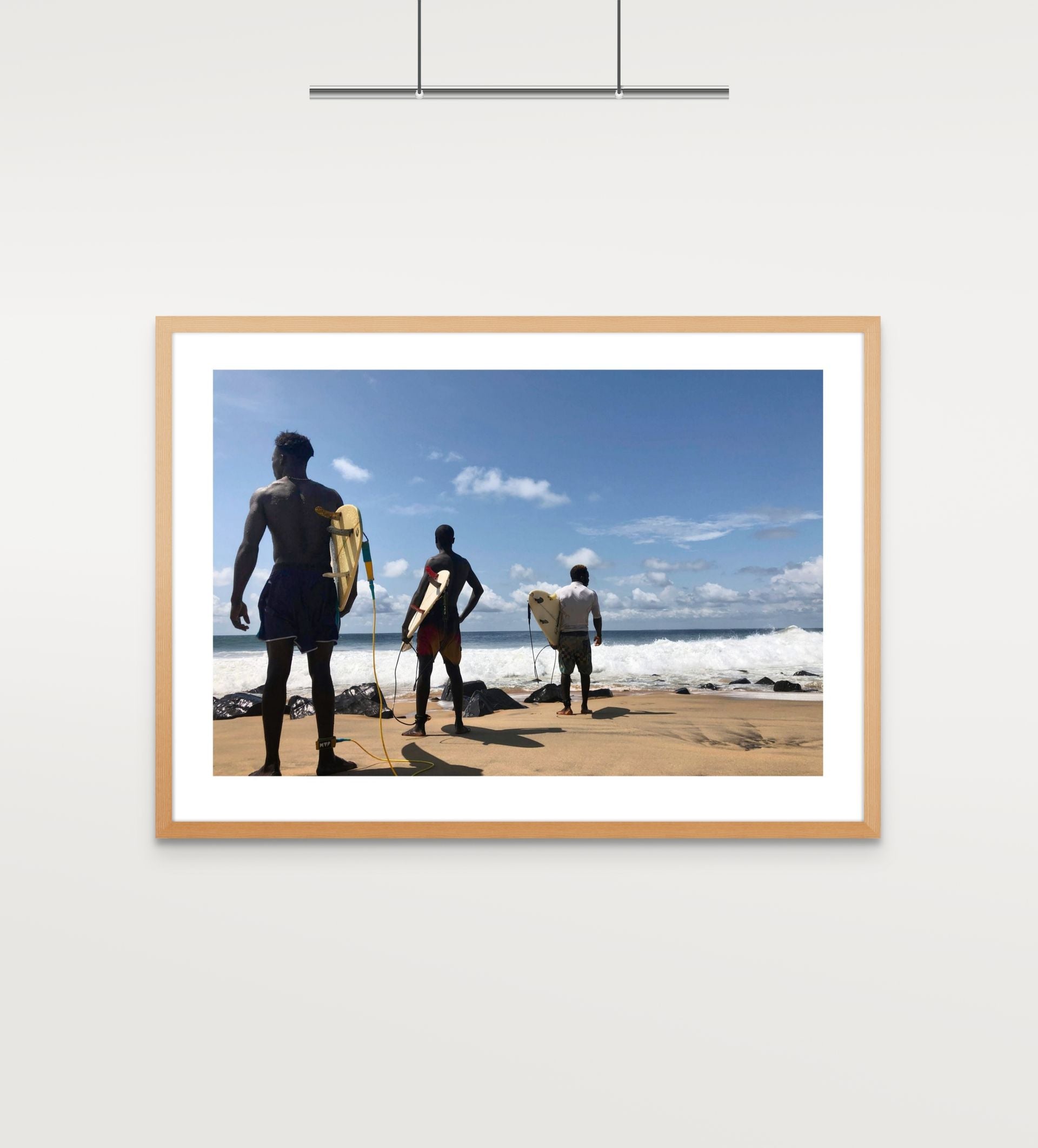 Each limited edition print is made on archival museum‑grade fine art paper in a small, numbered run. Signed and exclusive, you can choose a matte or gloss finish, along with one of two hand‑painted frames created for this collection. These prints capture the spirit of Robertsport’s surf culture in the detail it deserves and are made to live with you for a lifetime.