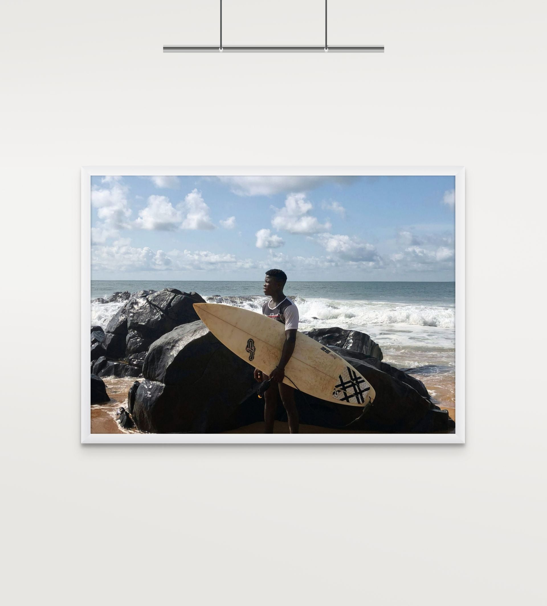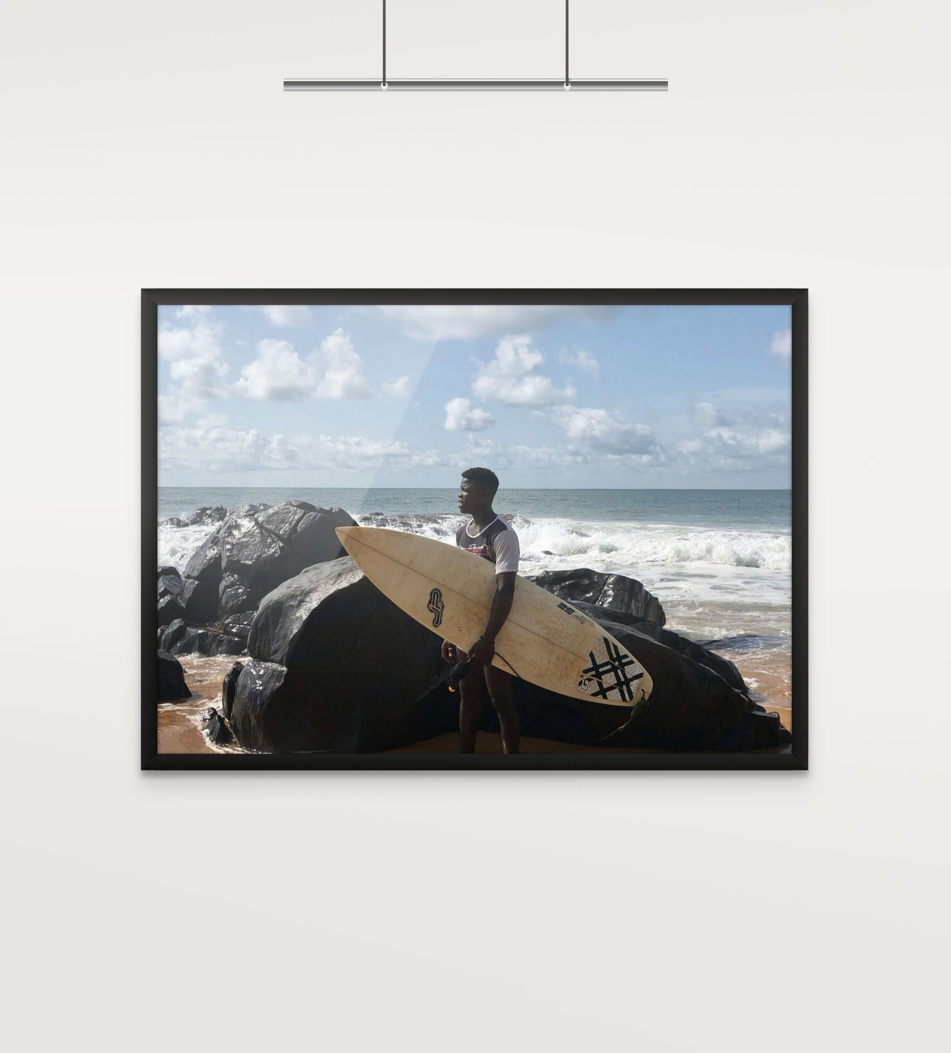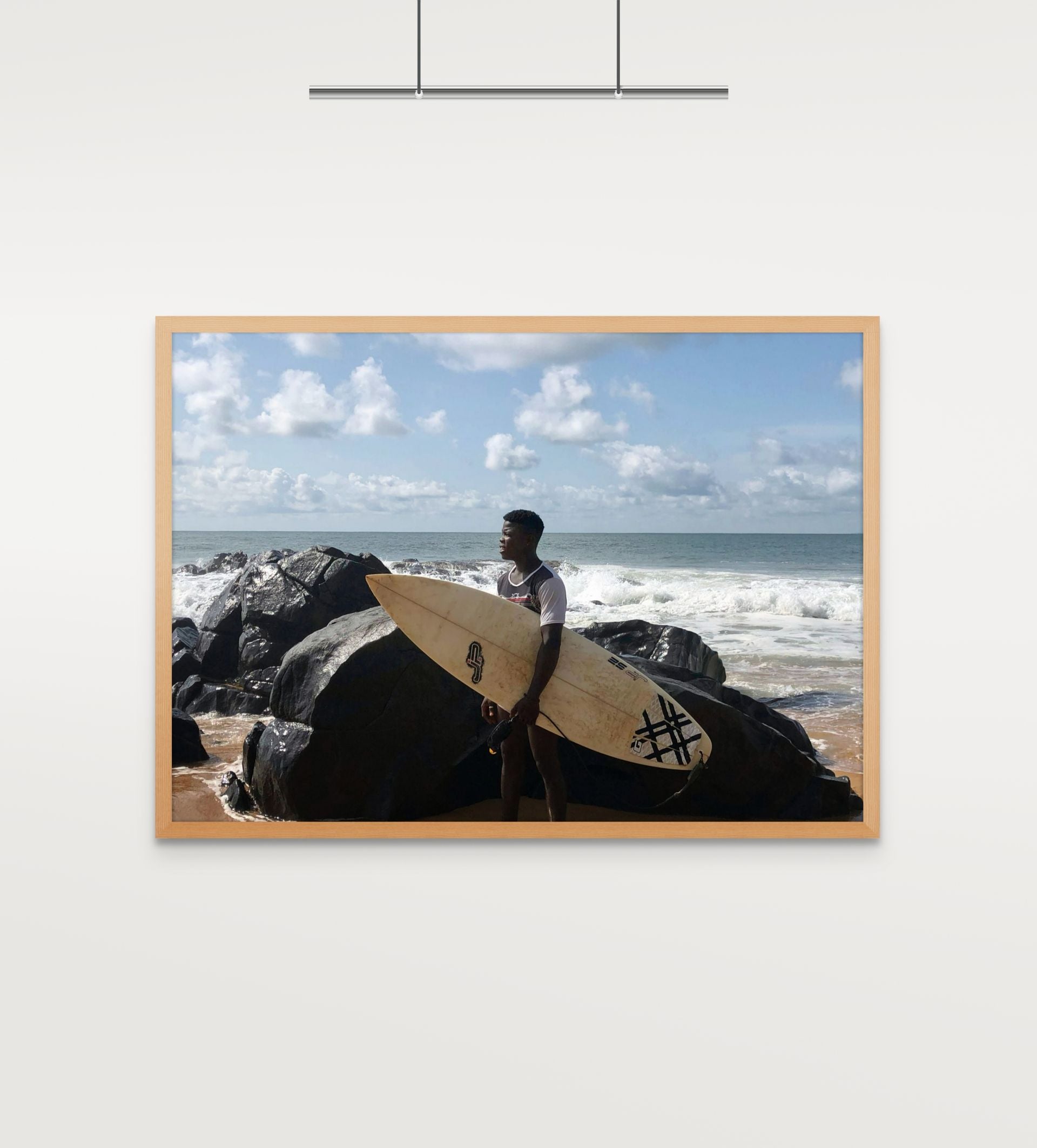 Each print from the open edition is printed on premium photo satin paper, with two hand‑painted frames to choose from. They bring Robertsport’s surf culture into your space, from the waves and the coast to the easy rhythm of life by the water.