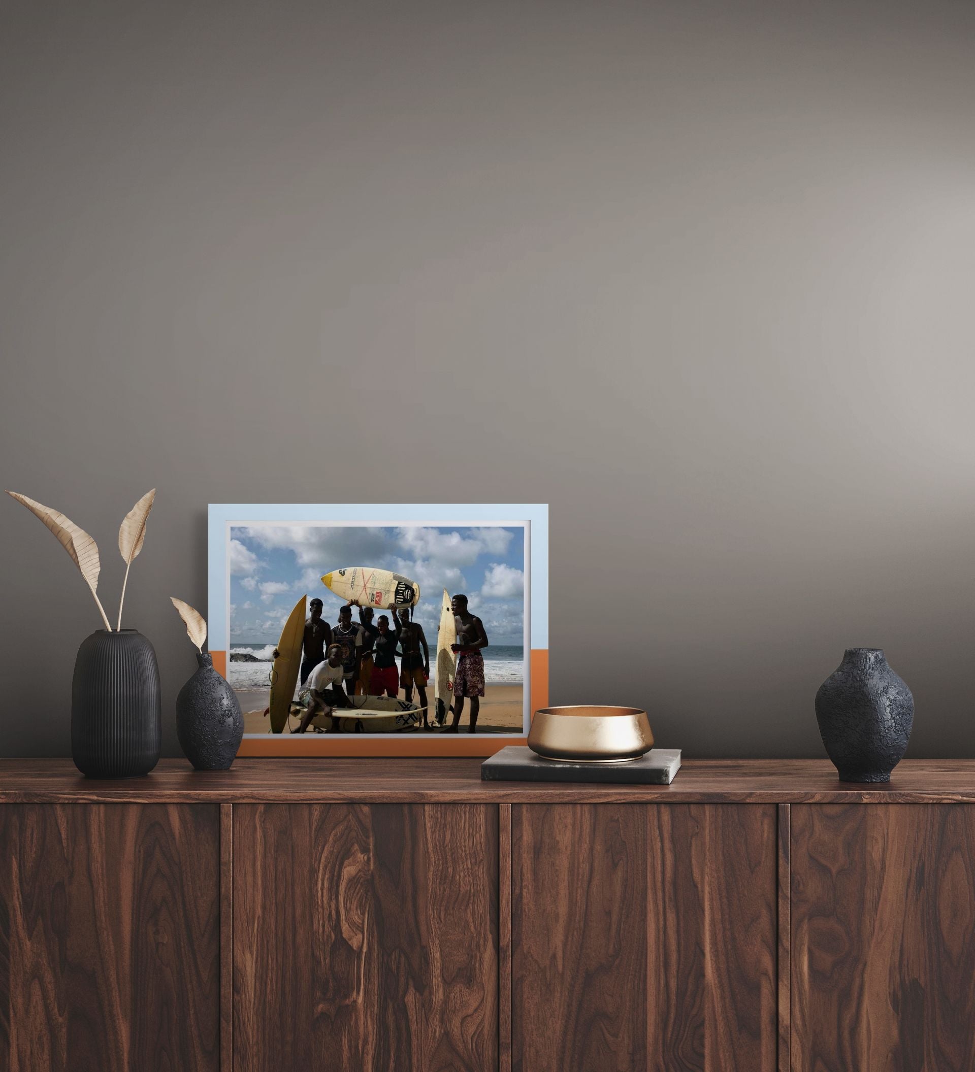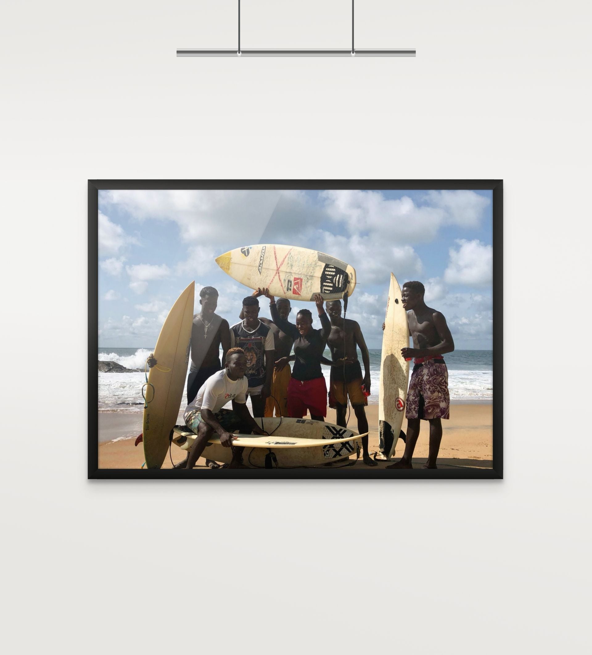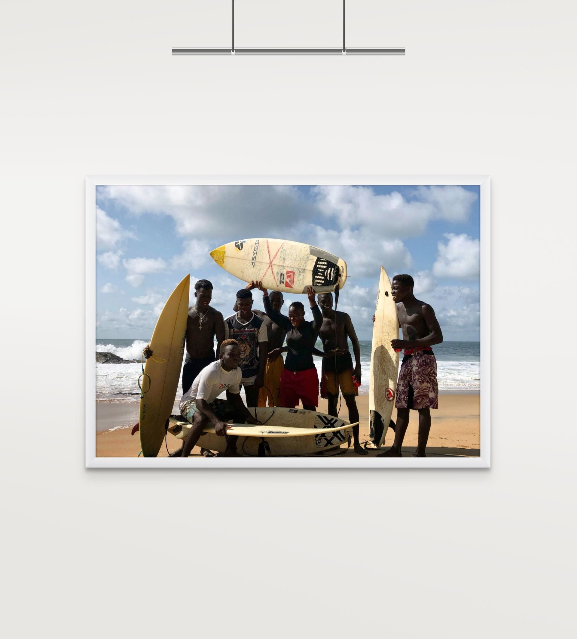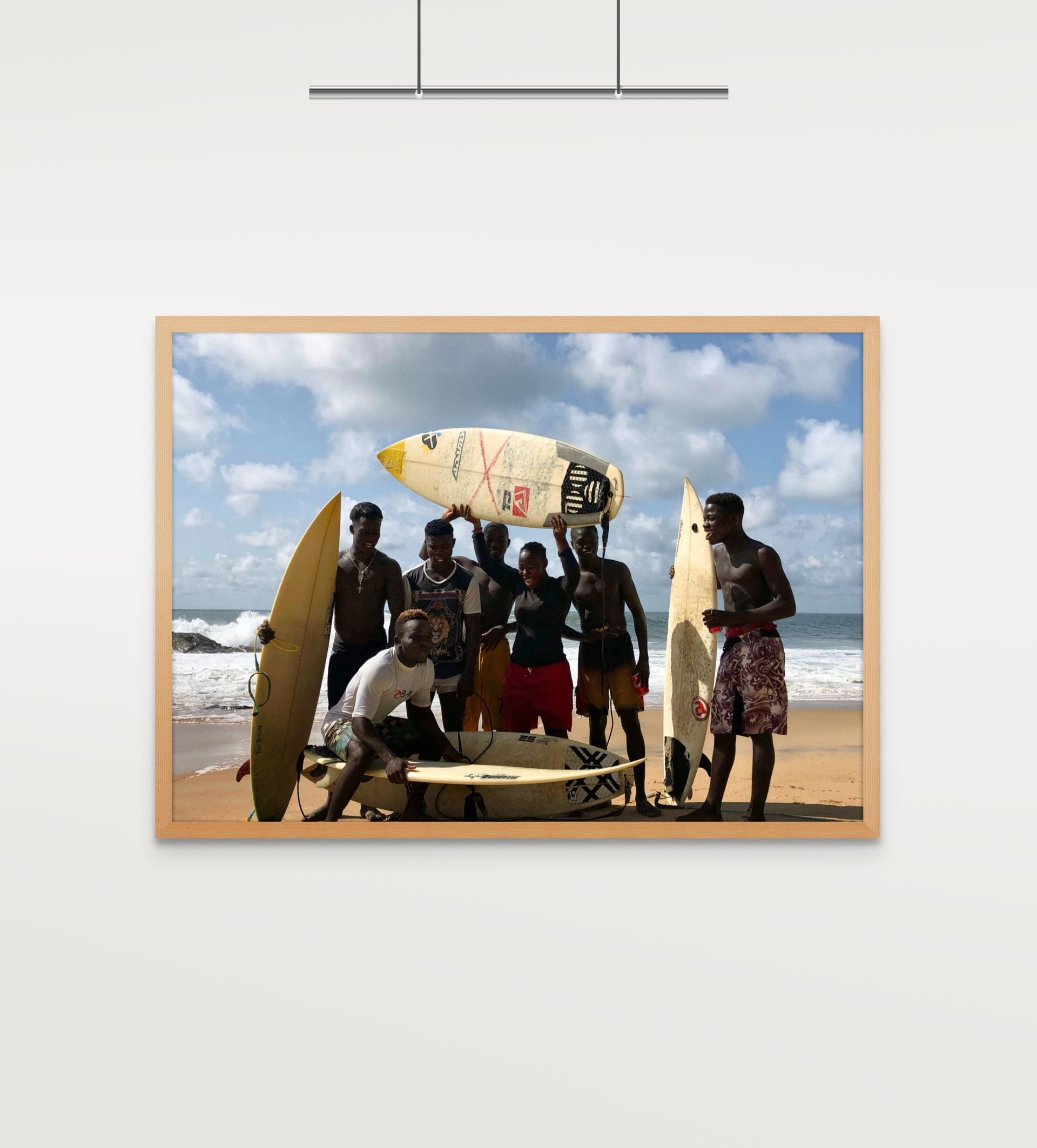 Each print from the open edition is printed on premium photo satin paper, with two hand‑painted frames to choose from. They bring Robertsport’s surf culture into your space, from the waves and the coast to the easy rhythm of life by the water.